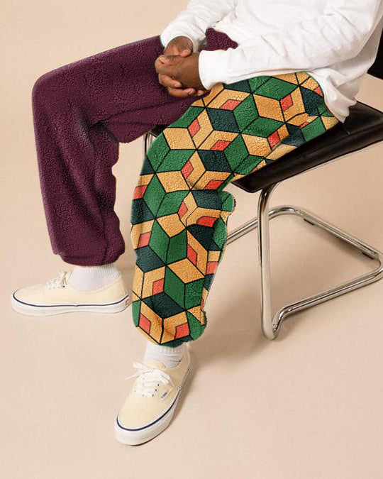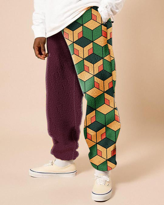 Contrasting trendy brand printed polar fleece trousers