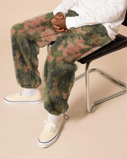 Gradient tie-dye printed polar fleece men's casual pants