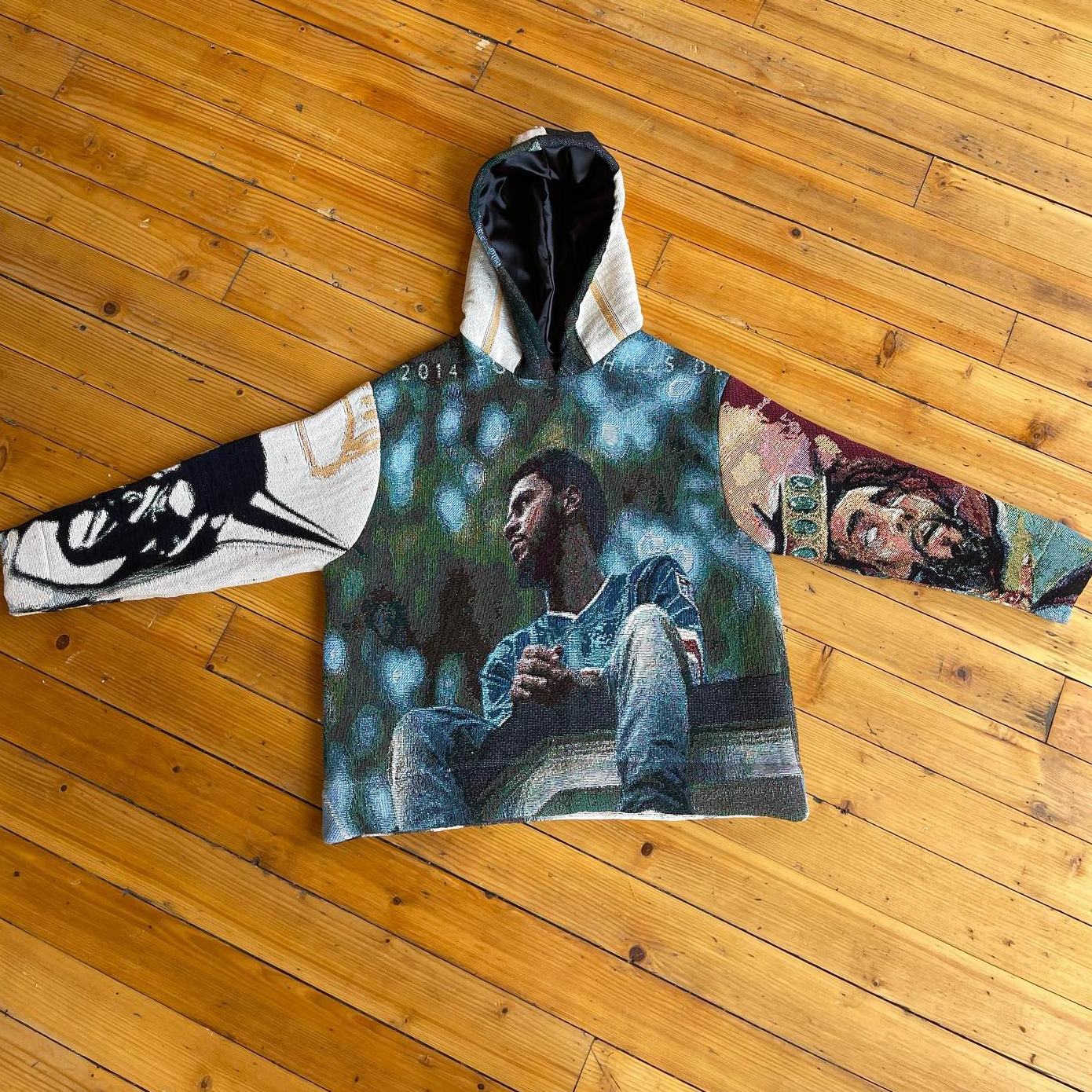statement color-block tapestry hoodie
