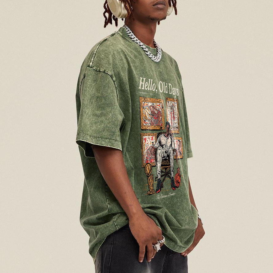 Old Times Casual Street Retro Washed Sports T-Shirt
