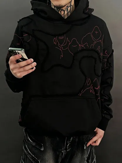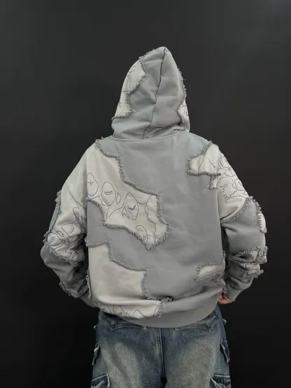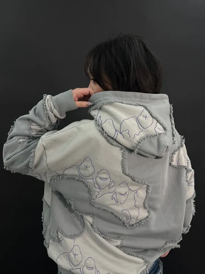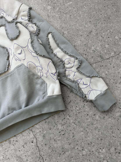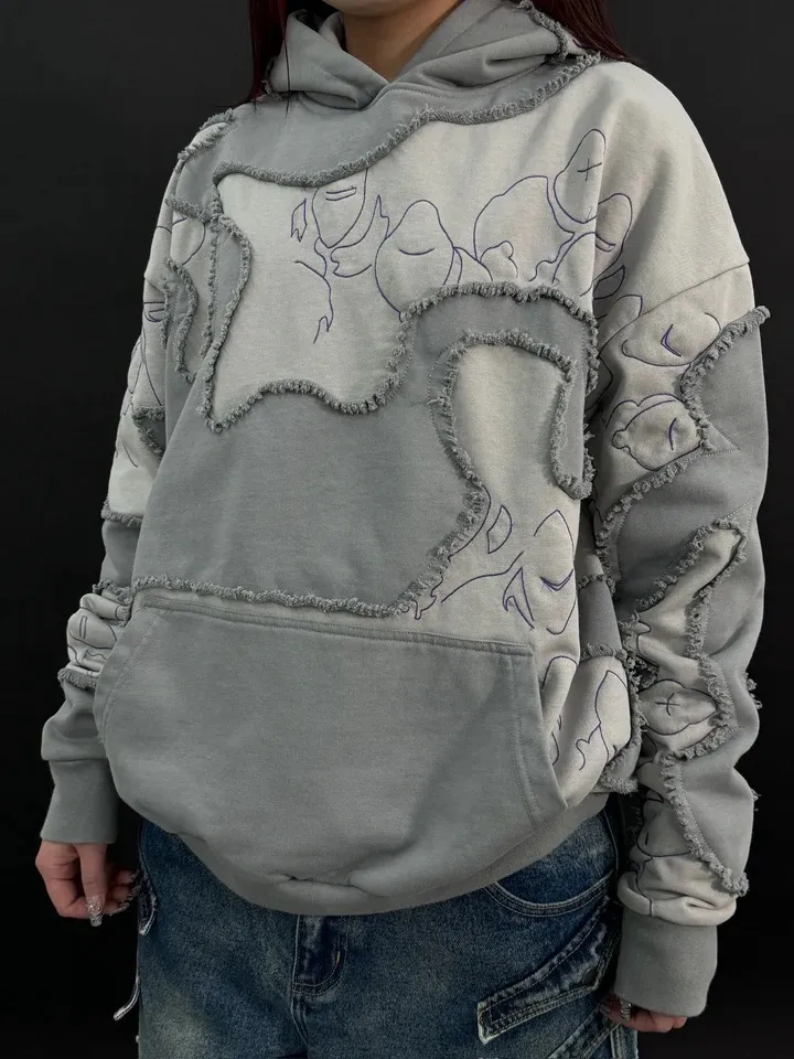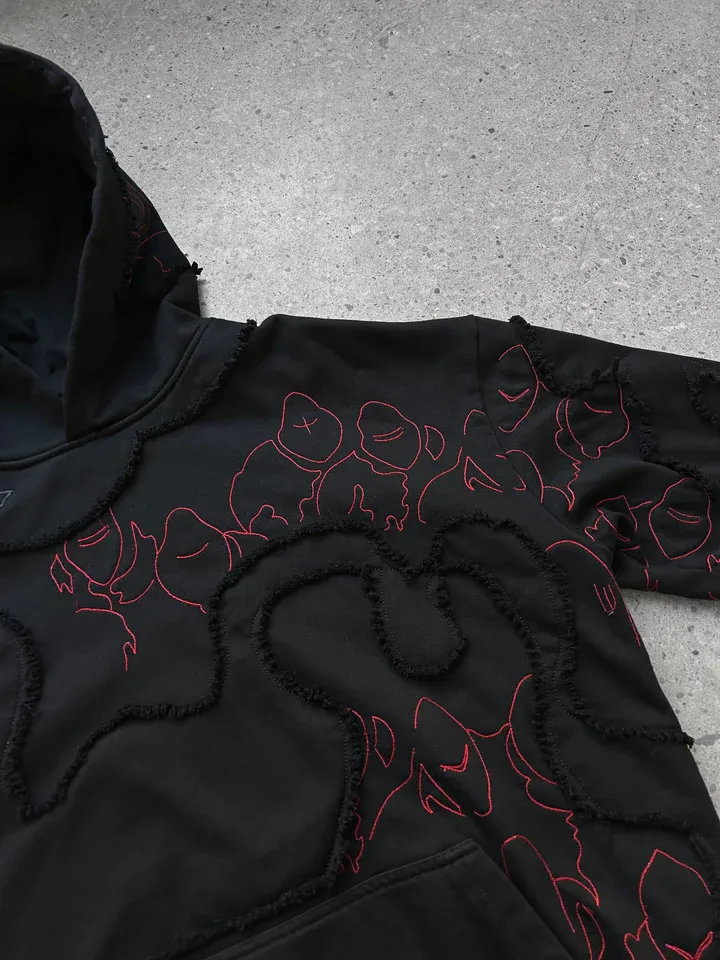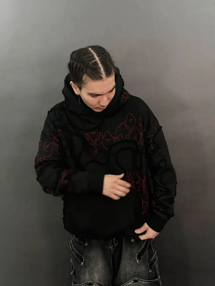 This is our classic hoodie made of double-layer thick French terry. Embroideries on both sides