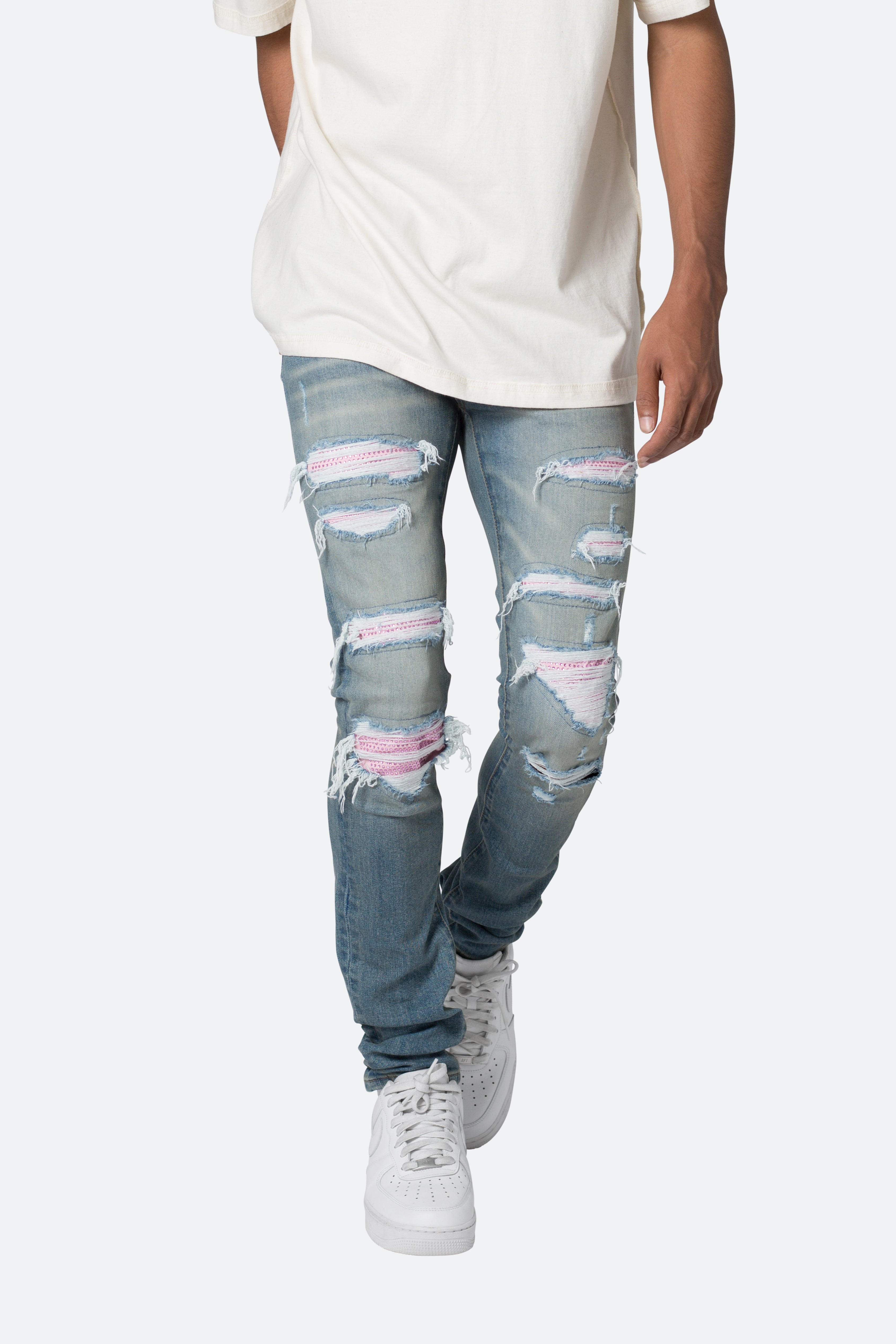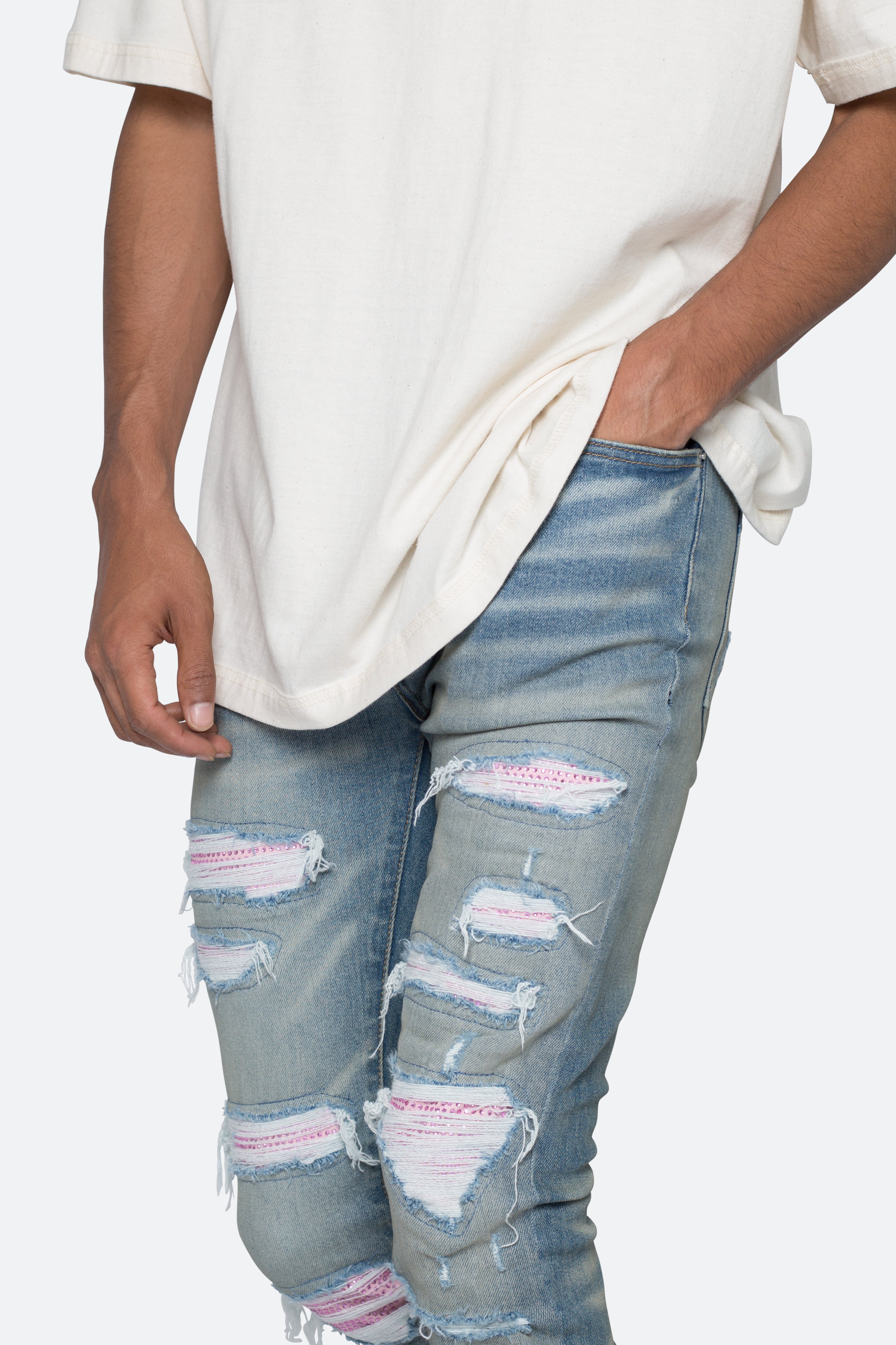 X555 Crystal Skinny Denim - Blue/Pink